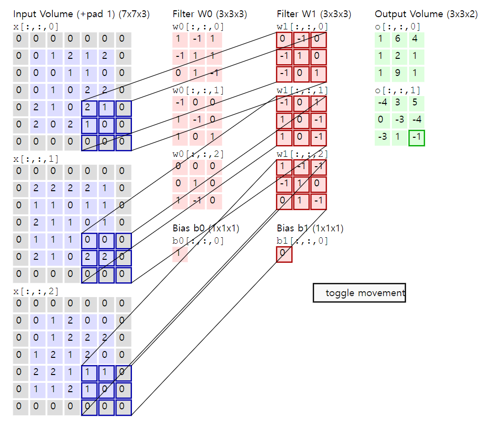 - $x_{ijm}$: Input의 $m$번째 Channel의 $i$행, $j$열의 성분