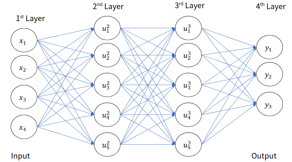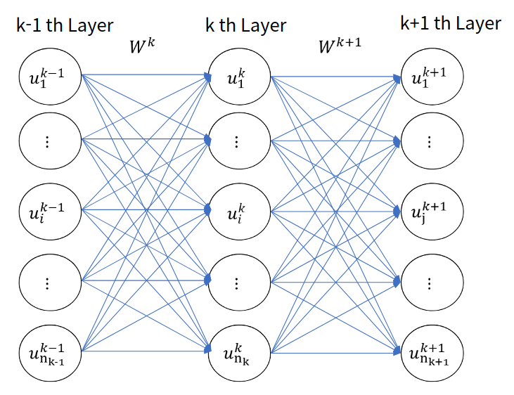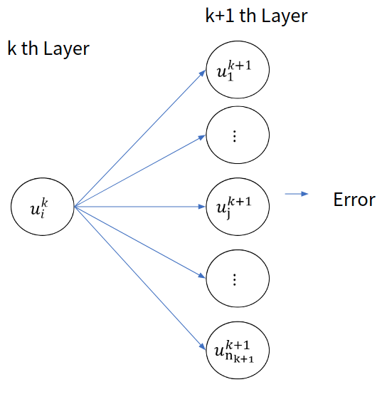 이제 delta를 정의했으니, 앞층의 delta와 뒷층의 delta간의 관계를 밝혀내서 연산을 효율화 하면 된다. 이 과정을 손으로 유도하는 것은 필자가 생각해도 실용적 측면에서는 정말 쓸데가 없다. 왜냐하면 현대의 신경망 구조는 너무 복잡해져서 이걸 유도했다 쳐도 다른 구조들이 정말 많이 때문에 써먹을 수가 없기 때문이다. 하지만 아주 제한적인 경우에 대해서 이걸 유도해 보도록 하겠다.